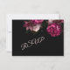 Este elegante Cartão de Resposta de Casamento apresenta rosas desenhadas à mão em um fundo preto. Convite correspondente disponível.