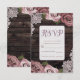 Cartão RSVP Rosas Florais Rosa Poeira Madeira Rústica e Renda