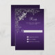 Cartão RSVP Roxo Escuro com Redemoinhos Florais Prateados Orna