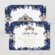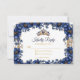 Cartão RSVP Royal Blue Golden Tiara Floral Quinceañera
