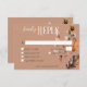 Apresentando nosso delicado cartão de resposta do casamento com opções de jante escolha, com um rico fundo de ferrugem de terracota que captura perfeitamente a essência do outono. O canto superior direito é adornado com um espantoso spray de folhagem de aquarela, apresentando flores elegantes de creme, folhas mornas e ferrugem, e delicadas gramíneas secas de queda. Este design encantador define o tom perfeito para o seu casamento outono, combinando encanto rústico com elegância de eterno. Torne o seu dia especial inesquecível com este belo convite feito que fala ao coração da estação. Criado pela imprensa simplesmente de farmácia.