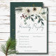 Celebre sua história de amor com encanto rústico com nosso cartão de resposta de casamento encantador com escolhas jantes. As aquarelas pintadas à mão dão vida a um buquê de tirar o fôlego com pinheiro perfumado, bagos vermelhos vibrantes, flores brancas delicadas e eucalipto refrescante. Um toque de magia balnear é capturado com um borrão de cintilação brilhante de ouro falso, acrescentando um toque de elegância ao tema rústico. Dentro de uma fina, escura verde e de um quadro bronzeado, o design se senta sobre um fundo branco nítido, garantindo que seus detalhes de casamento se destacem lindamente. Esta suite cativante dá um tom quente e convidativo, refletindo perfeitamente a beleza natural do seu dia especial. Criado pela imprensa simplesmente de farmácia.