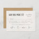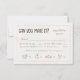 Prepare-se para algumas risadas com este cartão RSVP de feitiço rústico, perfeito para casais que não se levam muito a sério. A frente apresenta uma redação informal e ícones brancos desenhados à mão para representar as escolhas das refeições — porque não fazer a seleção jantada nem mesmo ser divertida? O verso adiciona um toque de na moda com um fundo marrom de papel kraft e detalhes de flechas decorativas, juntando toda a vibração da terra e do boho. Uma maneira excelente de manter as coisas pessoais, de guardar, e um pouco atrevido. Procure ID1109 para ver outros produtos nesta coleção.