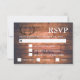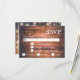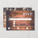 Cartão RSVP de casamento russo com fundo de madeira com luzes de cordas. A data para RSVP por tem uma caixa de texto rotulada para ajudá-lo a personalizá-la para seu dia.