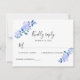 Cartão RSVP rustic dusty blue watercolor-style flower & leaves