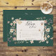 Este cartão de resposta do casamento apresenta um elegante fundo verde esmeralda, que exalta um senso de sofisticação e riqueza. A matiz verde profunda cria um pano de fundo cativante que dá o tom para uma celebração memorável. No centro do convite, destaca-se um quadro de texto em forma oval, que fornece um ponto focal gracioso. O quadro é lindamente trabalhado, exuando um sentido de refinamento e elegância. Sua forma adiciona um toque de singularidade, captando a atenção dos receptores. Ao redor do quadro de texto, flores silvestres de cor d'água delicadas e rústicas são arranjadas artificialmente. Estas florescências charmosas, representadas em matizes suaves, evocam uma sensação de beleza natural e tranquilidade. A técnica de aquarela lhes dá uma aparência suave e etérea, aprimorando o ambiente romântico geral do convite. A combinação do fundo verde esmeralda, o quadro de texto oval, e as flores silvestres rústicas de aquarela criam um convite de casamento visualmente atordoante que exude elegância e um toque de chorona. Ela dá palco a uma celebração romântica cheia de beleza natural e momentos corajosos. Criada pela "Simply Farmhouse Press", é parte da suíte de casamento Rustic Wildflower Frame Emerald Green.