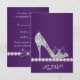 Convite de RSVP de sapato preto e roxo de salto alto com laço roxo para festa de aniversário de sweet sixteen. Este convite de RSVP de festa de aniversário roxo elegante funciona bem para o convite de aniversário de qualquer menina ou mulher. Adicione seus detalhes na frente e no verso simplesmente escolhendo o botão "Personalize!" para começar a adicionar os detalhes do seu evento, estilo de fonte, tamanho e cor da fonte e texto. Por favor, note que todos os desenhos de convites que você encontrará na Zazzle são gráficos impressos em papel liso sem pedras, laços, relevos, rebaixados ou peças ou partes adicionadas.
