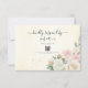 O cartão RSVP Rosa e Rosa Branca Blush Blooms complementa lindamente seu tema de casamento com suas delicadas rosas de aquarela em tons de rosa e branco. Avançado com um toque de confete de ouro e uma lavagem verde suave, este design elegante convida os convidados a confirmar sua presença com estilo e graça.
