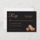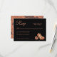 Certifique-se de que seus convidados respondam com estilo com este Cartão de RSVP Quinceañera de Cobre Metálico Luxuoso. Com um par elegante de sapatos de princesa de cobre brilhante e detalhes delicados de rosa, este cartão complementa perfeitamente o seu conjunto de vestido de baile glamouroso. O fundo preto sofisticado e o texto em tom de rosa dourada fornecem um visual moderno e de alta moda para a sua celebração marcante.