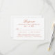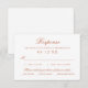 Complete sua suíte com este cartão de RSVP de casamento com script de cobre quente e tipografia serifada refinada em um fundo branco limpo. Inclui espaço para o nome do convidado, seleção de presença e uma seção conveniente de escolha de refeição. Minimalista, atemporal e perfeito para casamentos formais, tradicionais e modernos clássicos.