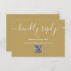 Um script de assinatura simples e elegante responde gentilmente à placa RSVP dourada com código QR. Projetado por Thisnotme©