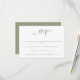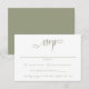 Uma placa RSVP simples, mas elegante, com script manuscrito. Texto verde sábio sobre fundo branco. Personalize o modelo com a data limite de RSVP. © Kimbellish, LLC