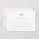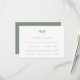 Estes cartões de resposta ao casamento elegantes e minimalistas apresentam uma tipografia inteligente verde, moderna escrita e limpa, sans serif text num fundo branco para um simples e na moda design que você vai adorar. Há espaço para adicionar suas opções de hóspedes para a escolha da refeição ou a escolha jante.