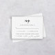Estes cartões de resposta elegantes e minimalistas ao casamento apresentam uma tipografia moderna e texto limpo, sans serif para um simples e na moda preto e branco que você vai adorar. Há espaço para adicionar suas opções de hóspedes para a escolha da refeição de entrada ou jante escolha.
