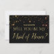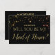 Peça ao seu amigo especial que seja a Madrinha de casamento na sua festa de casamento com esta bela carta "Você será minha Madrinha de casamento". Este cartão tem um lugar para você escrever uma mensagem especial para sua Madrinha de casamento dizendo a ela o quão especial ela é e que você realmente quer que ela faça parte do seu casamento. Projetado como parte de nossa suíte de casamento Shimmering Sparkles, apresenta um elegante, porém branco, design de estrelas rosa e douradas com texto dourado sobre fundo preto.