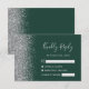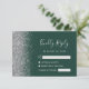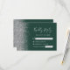 A borda esquerda desta elegante placa de caixa RSVP de casamento moderna apresenta uma borda cintilante de falso prateado. O texto personalizável combina a escrita manual de cinzas prateadas, fontes copperplate e itálico em um fundo verde esmeralda. O verso apresenta um esmeralda verde e design prateado correspondentes.