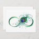 O símbolo do infinito com uma pena brilhante, verde, de pavão artístico sobre um fundo branco. Tatuagem.