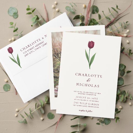 Cartão RSVP Simple Ivory Minimal Tulip Wedding