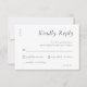 Cartão de Resposta RSVP Simples de Casamento Branco Preto de Script Elegante.