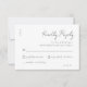 Cartão de Resposta RSVP Simples de Casamento Branco Preto de Script Elegante.
