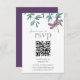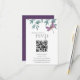 Este simples cartão RSVP de casamento verde do jardim moderno com código QR apresenta uma libélula a cores aquáticas em tons de roxo e rosa. Baseia-se num simples arranjo de verde natural para jardins de aquarelas, sobre fundo branco. O dorso é um roxo profundo sólido que combina com a libélula. Basta adicionar o URL do seu site de casamento, para que os seus convidados possam digitalizar o Código QR e responder facilmente.