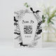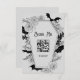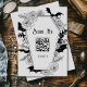 Ponha o tom para o seu assombroso casamento elegante com este cartão de cercado RSVP inspirado em gótica. Com uma estrutura em forma de caixão enfeitiçada com intrincados florais negros e morcegos fluttering, esta design é perfeita para casais planejando um casamento assustador ou temático do Dia das Bruxas. A frente da placa inclui um código de QR digitalizável para convidados a RSVP sem esforço, enquanto a parte traseira fornece detalhes adicionais de RSVP com um sotaque de morcego minimalista.