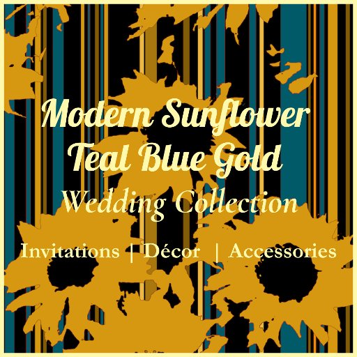 Modern Sunflower Teal Blue Gold Wedding CollectionCriado por Remi de Van
