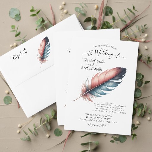 A coleção Whispers of Grace: Feathered Elegance é projetada para capturar a beleza suave e o significado simbólico das penas em um estilo artístico refinado. Apresentando imagens delicadas e fluentes de penas em tons pastéis de rosa-pincel e azul-umedecido, esta coleção é perfeita para os casais que querem que sua papelaria de casamento reflita elegância, liberdade e leveza. Cada peça é uma representação gentil de graça e serenidade, ideal para criar uma atmosfera calmante e romântica. De convites e cartões RSVP a gráficos de assentos e favores de casamento, esses designs oferecem uma maneira sutil, mas impactante, de adicionar beleza natural e um toque macio e etéreo ao seu dia especial. Personalize cada item para fazer do seu casamento um verdadeiro reflexo da sua história de amor.