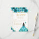 Cartão RSVP Teal Floral Dark Skin Princess Sweet Sixteen