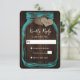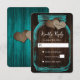 Cartão RSVP Teal Mason Jar Burlap Hearts Wood Wedding