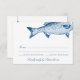 Este elegante cartão RSVP de Baixo Revestido Azul com marinho inclui linha para nomes de hóspedes, apresentando um Bass com Striped no verso, projetado para combinar a minha coleção de casamento Striped Bass da Concertina Press.