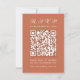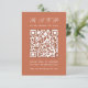 Um RSVP de casamento de terracota simples com um grande código QR no centro e o título escrito em caligrafia. Todo o texto é branco. É vertical, orientado para retrato.