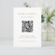 Este cartão de resposta de casamento com código QR minimalista e elegante apresenta texto boho terracotta sobre fundo branco limpo, para uma aparência simples e na moda. Seus convidados podem examinar o código facilmente para visitar seu site de casamento e o rsvp online.