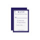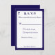 Design front features the traditional format for a wedding response card displayed in a navy-blue font against a white background. The image of a cross is displayed at top corner. Entire design is framed by an elegant navy and white border.