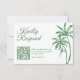 Tropical Coastal Retro Beach Green Destination Wedding QR Code RSVP Card