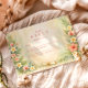 A soft parchment backdrop is framed by lush tropical greenery and coral hibiscus blooms, creating a fresh yet elegant celebration aesthetic. Delicate plumeria accents and airy palm leaves bring a warm, destination-inspired feel, while the classic typography keeps the layout refined and timeless. A subtle graduation cap detail grounds the design with just the right academic touch.