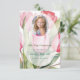 Celebre a Primeira Comunhão especial do seu filho com esta elegante e personalizável placa RSVP. Apresentando um fundo de tulipa de aquarela macia em tons de rosa, vermelho e verde, este design adiciona um toque de beleza e calor naturais. O quadro fotográfico em forma oval central permite personalizar o cartão com a imagem do seu filho, fazer-o como uma marca de seleção verdadeiramente única. A escrita sofisticada e as fontes serif em ouro e em verde profundo criam uma sensação refinada, tradicional, perfeita para essa ocasião sagrada. Ideal para convidar família e amigos a compartilhar esse marco significativo. B011