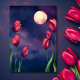 Cartão RSVP Tulipas Vermelhas, Lua Cheia e Estrelas Código QR