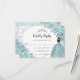 Cartão RSVP Turquesa Azul Floral Prata Quinceañera Princesa