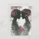 Cute wedding response card for Lesbian, LGBTQ couple. Two hand drawn, silhouette pink and black brides, standing face to face with pink leaf accents. They have their hair up and pink roses in their hair, cute pencil drawing for your special day.