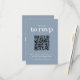 Design moderno mínimo com código QR e tipografia de tendência em fundo azul empoeirado. O texto pode ser facilmente personalizado para um único design único para o seu dia especial.