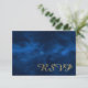 Um cartão RSVP moderno, com um belo fundo do espaço azul profundo com estrelas. Adicione seus próprios detalhes usando o modelo fornecido no menu personalizar. Esta é parte do espetacular pacote de casamento temático do universo que inclui o convite, envelope e outros aspectos essenciais.