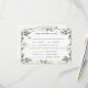 O design apresenta aguarela, folhagem verdejante e galhos em vários tons de verde com elementos de folhas douradas impressos. A parte de trás apresenta galhos correspondentes sobre uma moldura geométrica dourada. Este design oferece 3 (três) opções de refeições. Buffet e 2 (duas) opções de refeições também estão disponíveis. Visualize o link da coleção encontrado nesta página para encontrar esses itens e produtos correspondentes deste design.