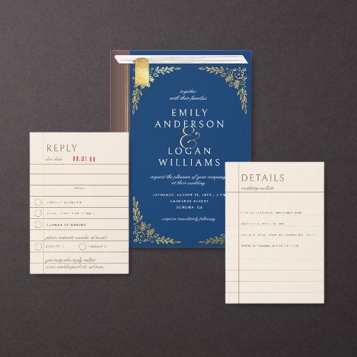This fun yet romantic wedding reply card features mimics the look of old library checkout cards with vintage inspired typography. The background and text colors are customizable. Designed to be paired with our Vintage Book collection... see the coordinating items in the collection.
