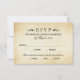 Inundações decorativas e floresces moldam esta elegante vintage inspirou a design do cartão de resposta do casamento. O fundo de marfim rústico é impresso com uma aparência texturizada de papel pergaminho envelhecido. Personalize o texto de RSVP personalizado com a data de vencimento da resposta. Esta versão inclui opções de janto listadas para que os convidados possam iniciar sua preferência de entrada plata.