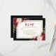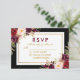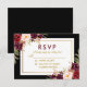 Cartão RSVP de Casamento Preto e Dourado com Borgonha Floral de Watercolor