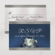 Design features a watercolor mountain scene on the front bottom on a blue satin background and trimmed with silver ribbon on the front. The back has details for the recipient to fill out. Designed to coordinate with the Watercolor Mountain Wedding Invitation Collection. To change details click «Personalize». To move the text or change the text size, font, or color click «Click to customize further»