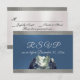 Design features a watercolor mountain scene on the front bottom on a blue satin background and trimmed with silver ribbon on the front. The back has details for the recipient to fill out. Designed to coordinate with the Watercolor Mountain Wedding Invitation Collection. To change details click «Personalize». To move the text or change the text size, font, or color click «Click to customize further»