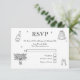 Cartão RSVP Wedding Whimsical Doodles Grey and White