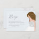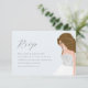 Este moderno cartão de resposta quinceanera de aniversário azul e branco apresenta um belo floco de neve com um lugar para o seu código QR no verso para que os convidados possam facilmente consultar o seu website de 15. A frente apresenta um bonito fundo azul de inverno pastel e ilustra margarida com um vestido de prata e quinceanera branco. A caligrafia Elegante rsvp acrescenta um toque delicado de acabamento. Por favor, envie-me uma mensagem se você estiver procurando um tom de pele diferente ou uma cor de cabelo diferente.